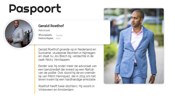 Op haar twaalfde verhuisde het gezin naar Suriname en ook daar was Roethof aanvankelijk een buitenbeentje. Verdachte Nicky Verstappen zaak nog zeker 90 dagen in cel. Lawyer Gerald Roethof first row R arrives at the court bunker in Amsterdam-Osdorp The Netherlands 11 October 2021 prior to the verdict of the criminal case against Moreno B.