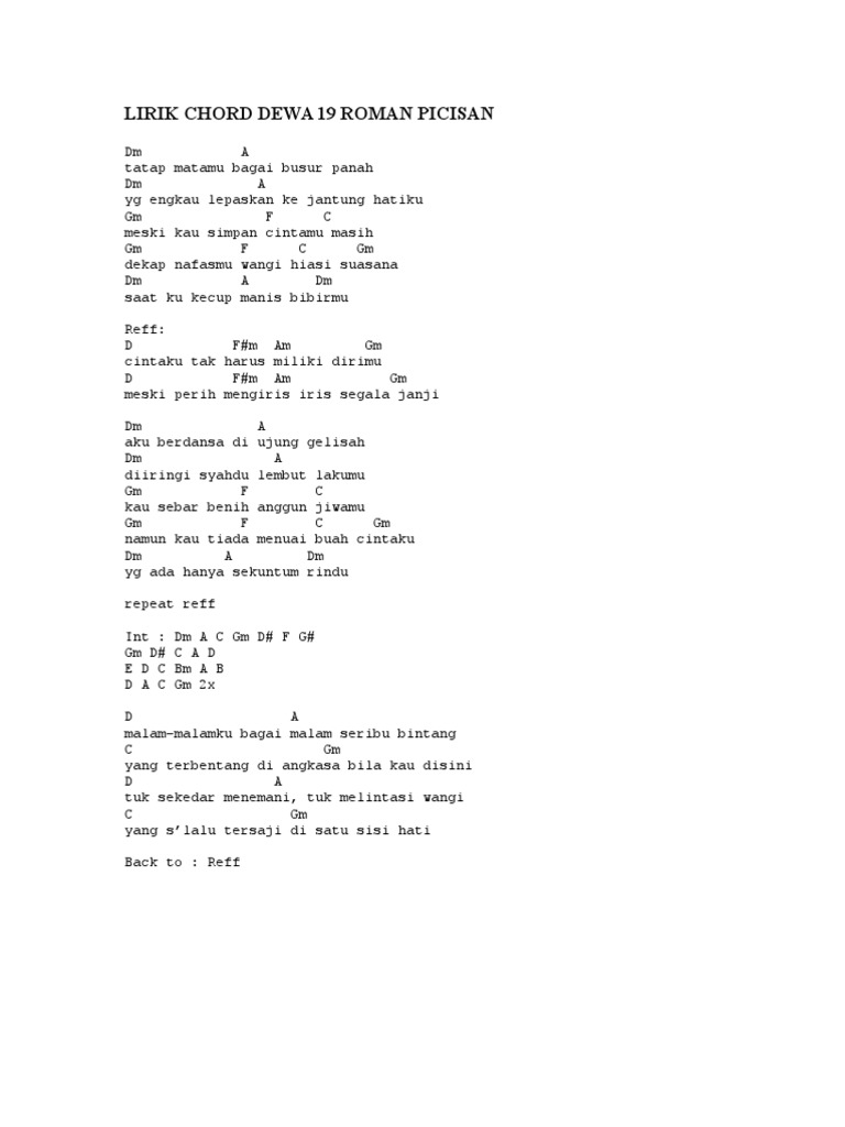 Lirik Chord Dewa 19 Roman Picisan Pdf